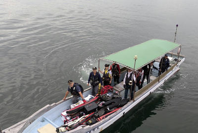 51名の参加で、6回に分けて送迎ですが舟付けは1カ所だけでそれも1番端にあり、
