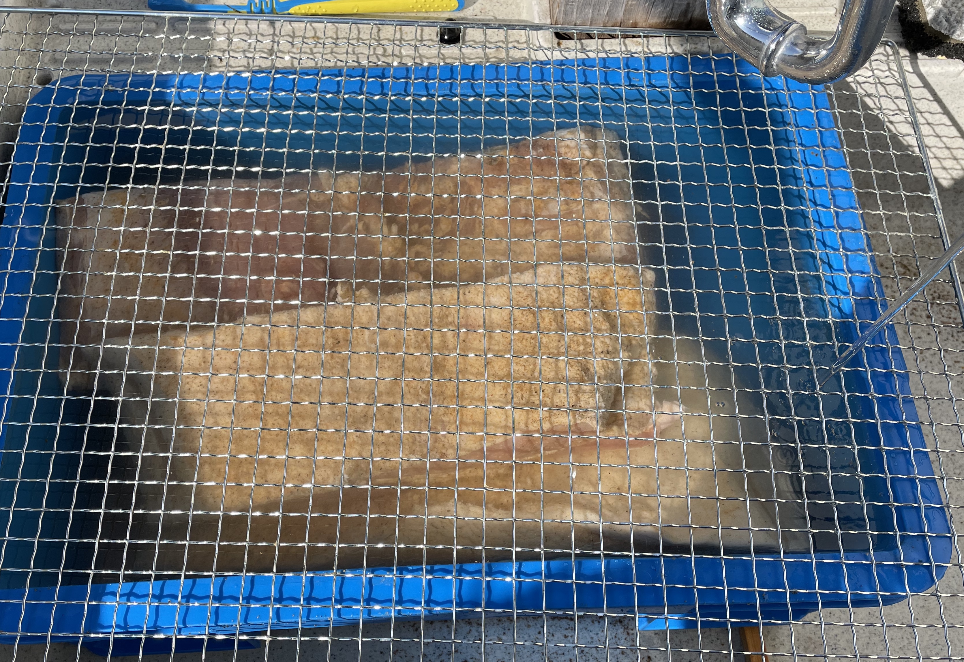 塩抜きが終われば乾燥ですが、雨が降らなければ軒下で風に当てて乾燥させます、