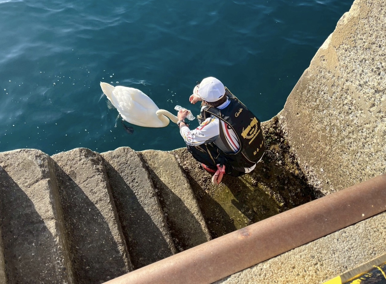最後に白鳥を手なずけようとしている人が!