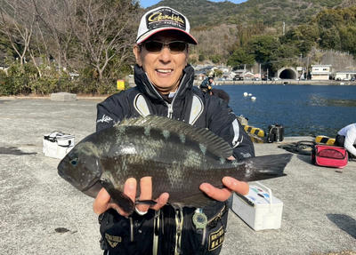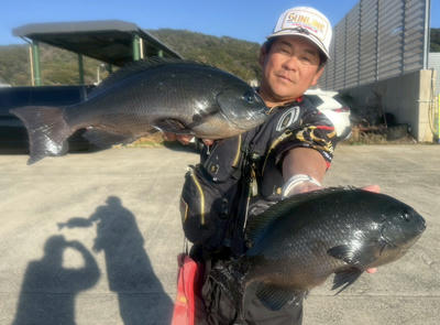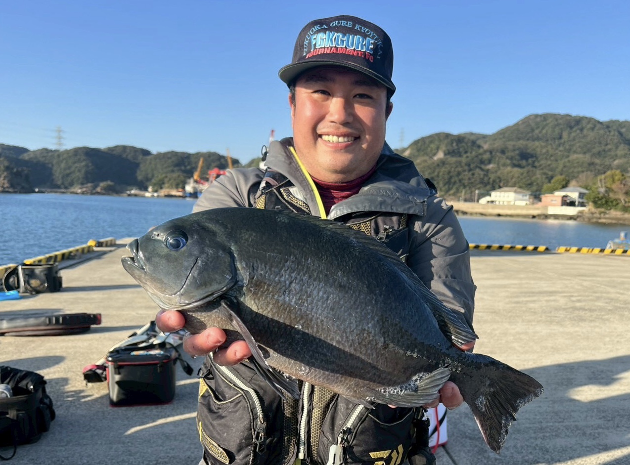 クロは残念でしたが立派なチヌを釣った首藤さん。