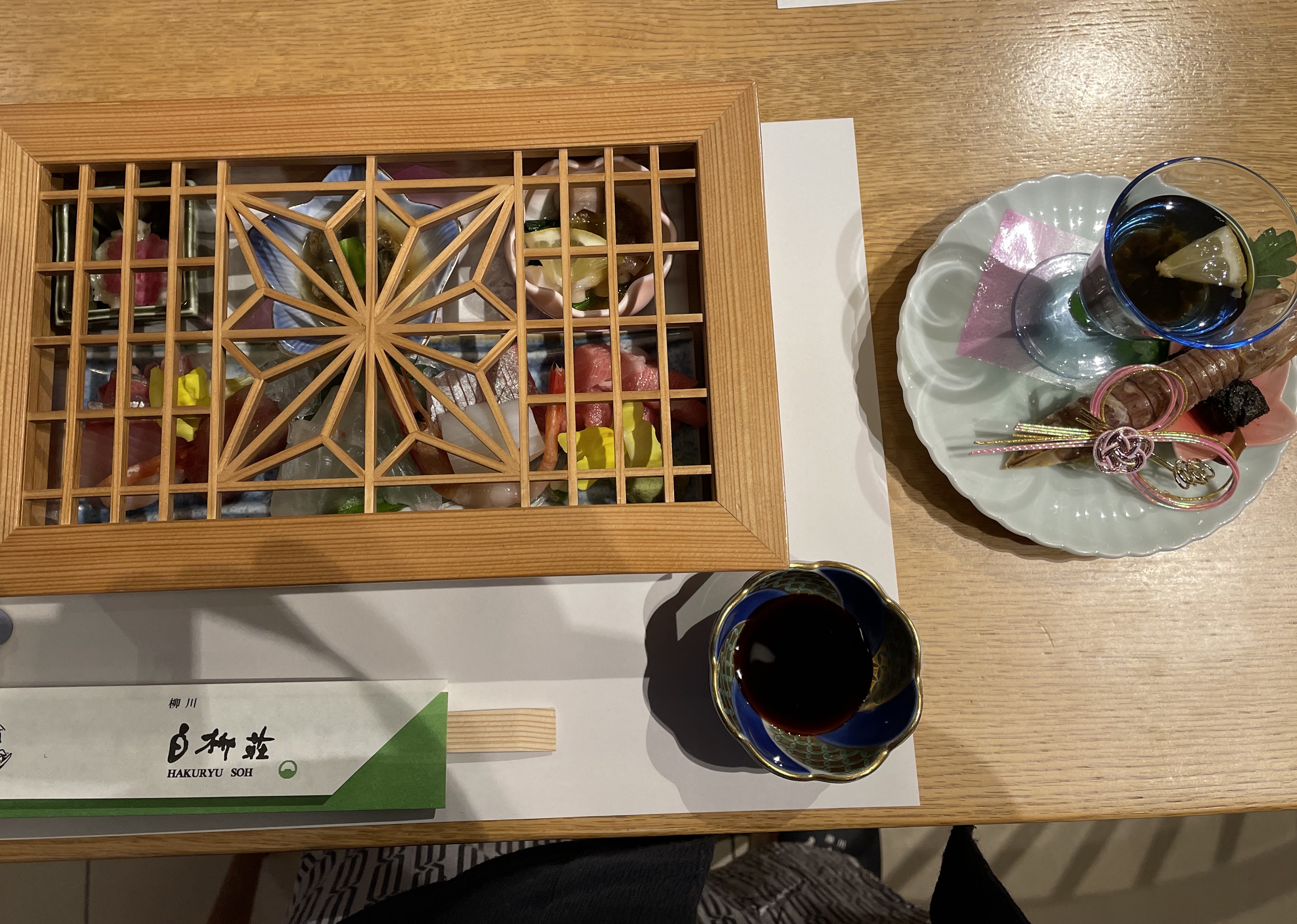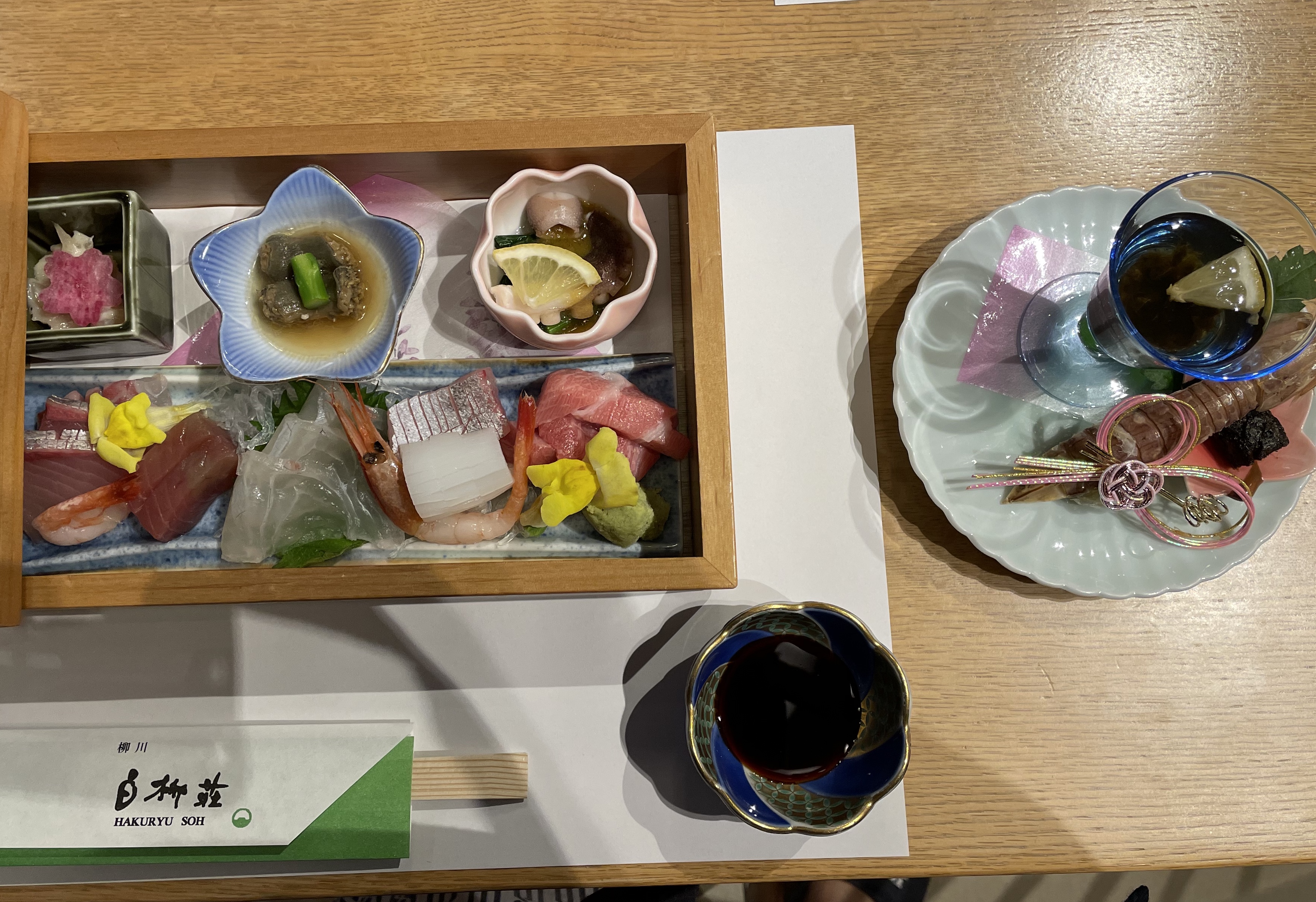 ゆっくり温泉に浸かり、食事は量が少なめの会席御膳をお願いして、それでも腹一杯になりまし
