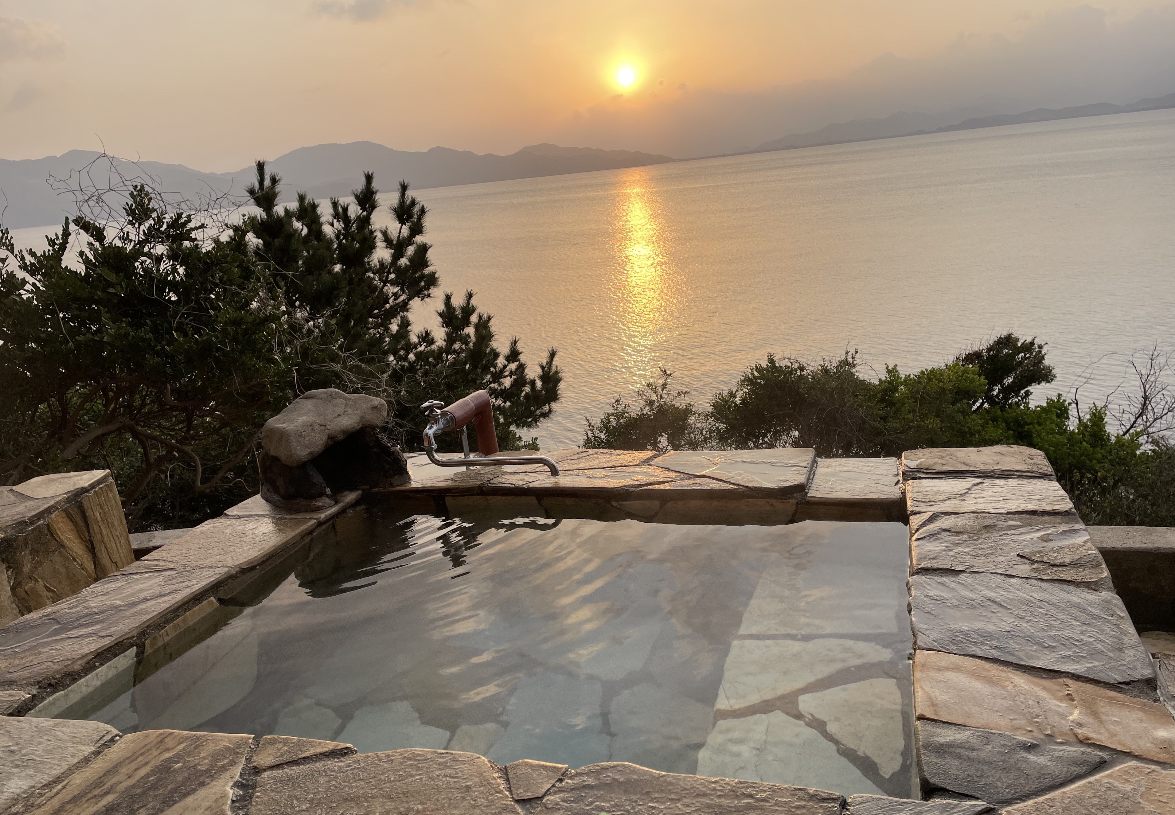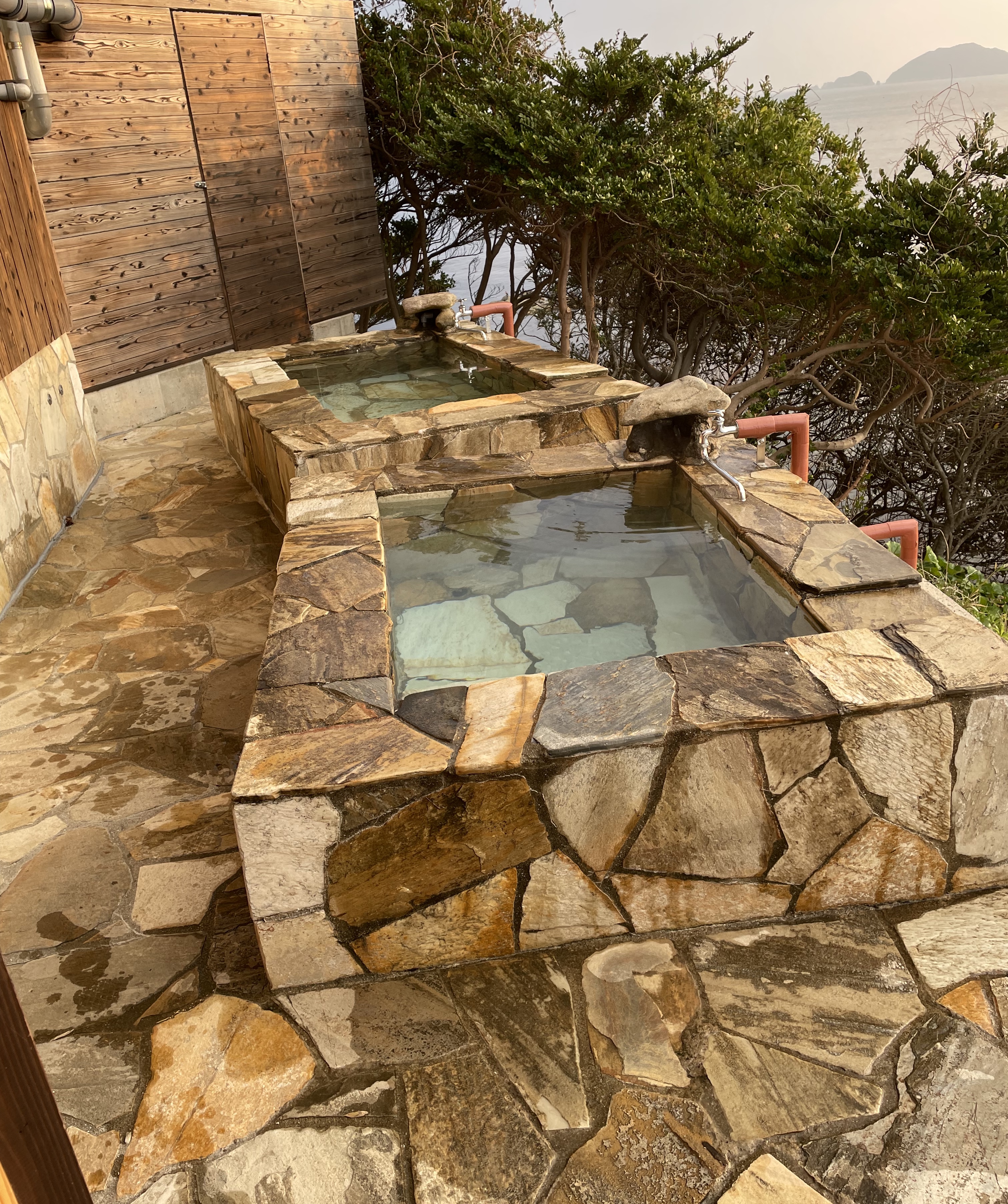 夜は運転の疲れもあり早めの就寝で、朝は6時起床で貸し切り露天風呂へ、と言っても