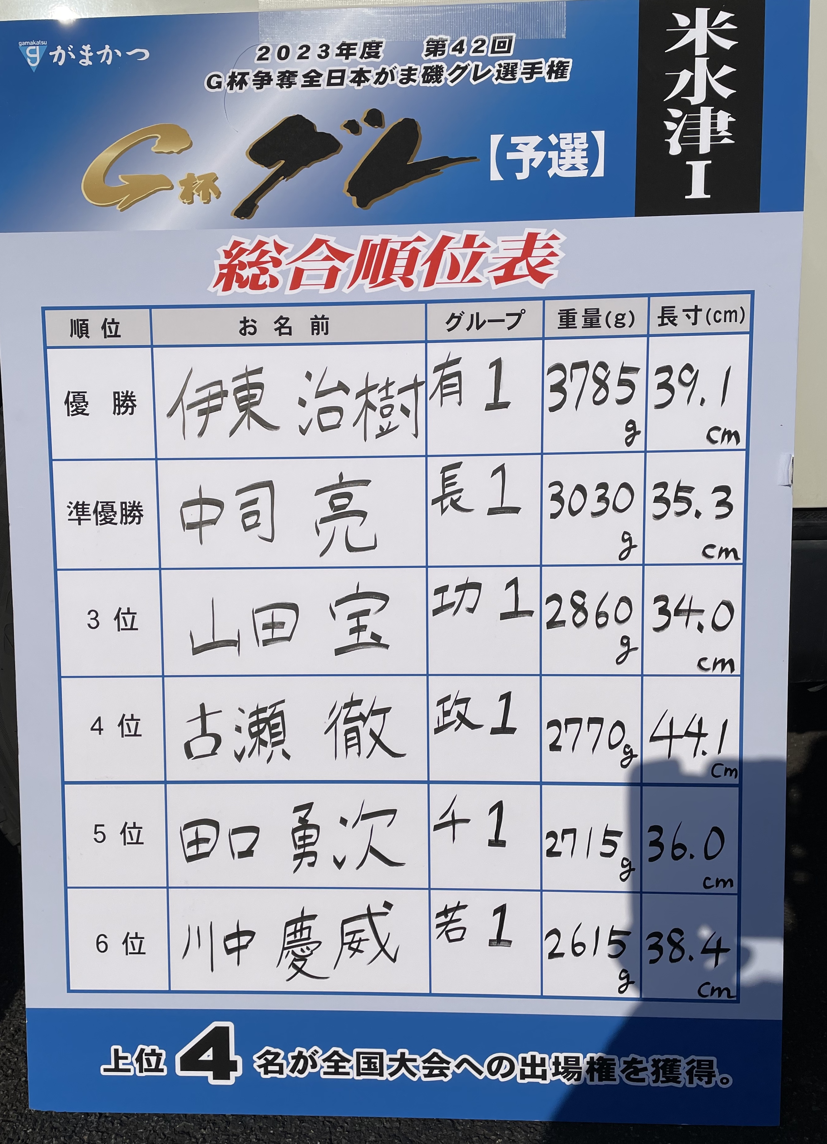4位は2名同寸で則さんと久志くん。