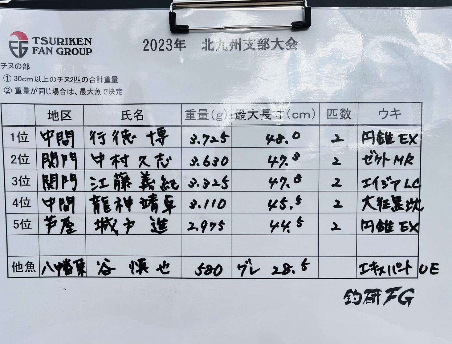 検量では40cmオーバーが次々と持ち込まれ、優勝は48cmで田中タカさんでした。