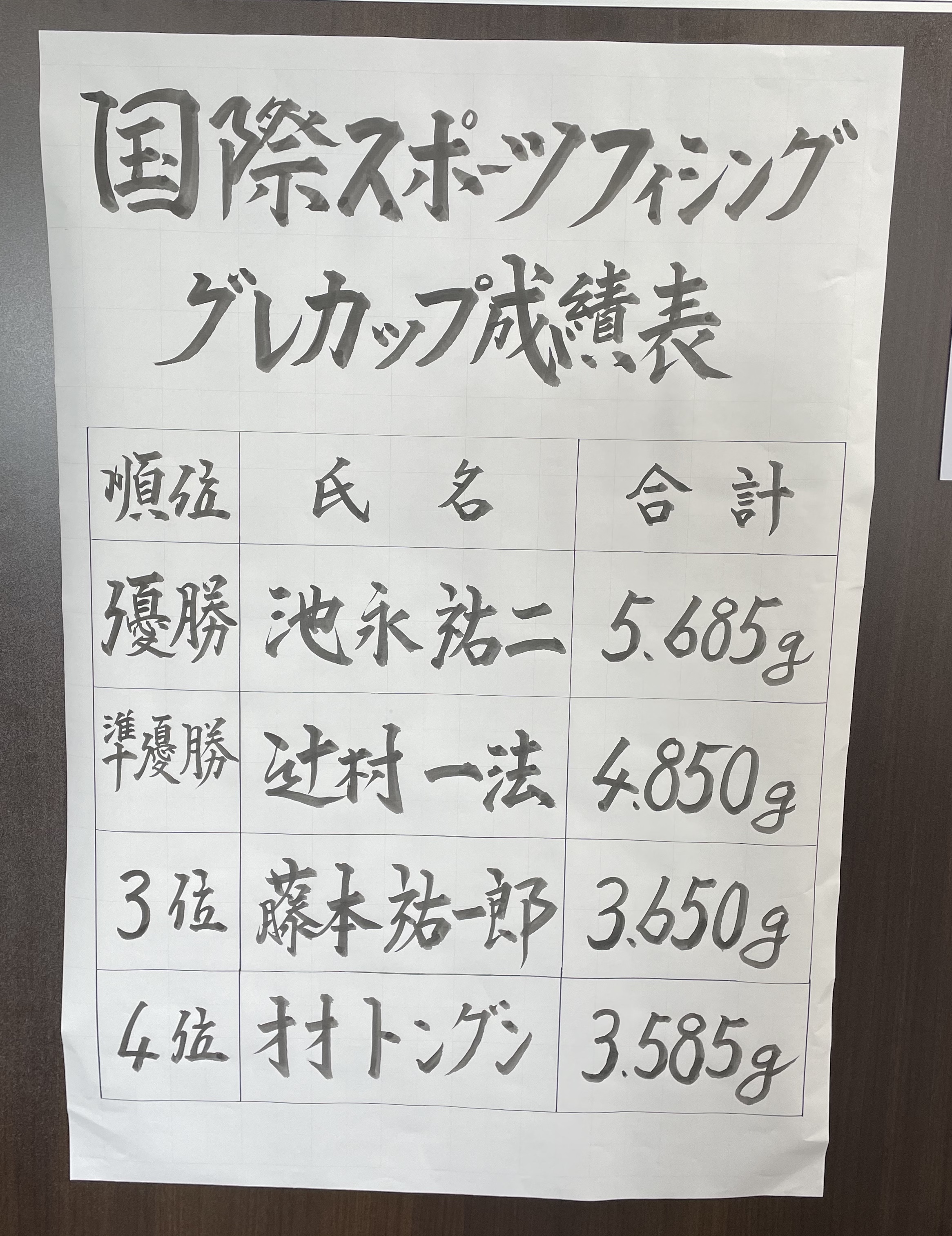 熱い戦いも終わり検量が終わり結果は池永選手の大会5回目の栄誉に輝きました。