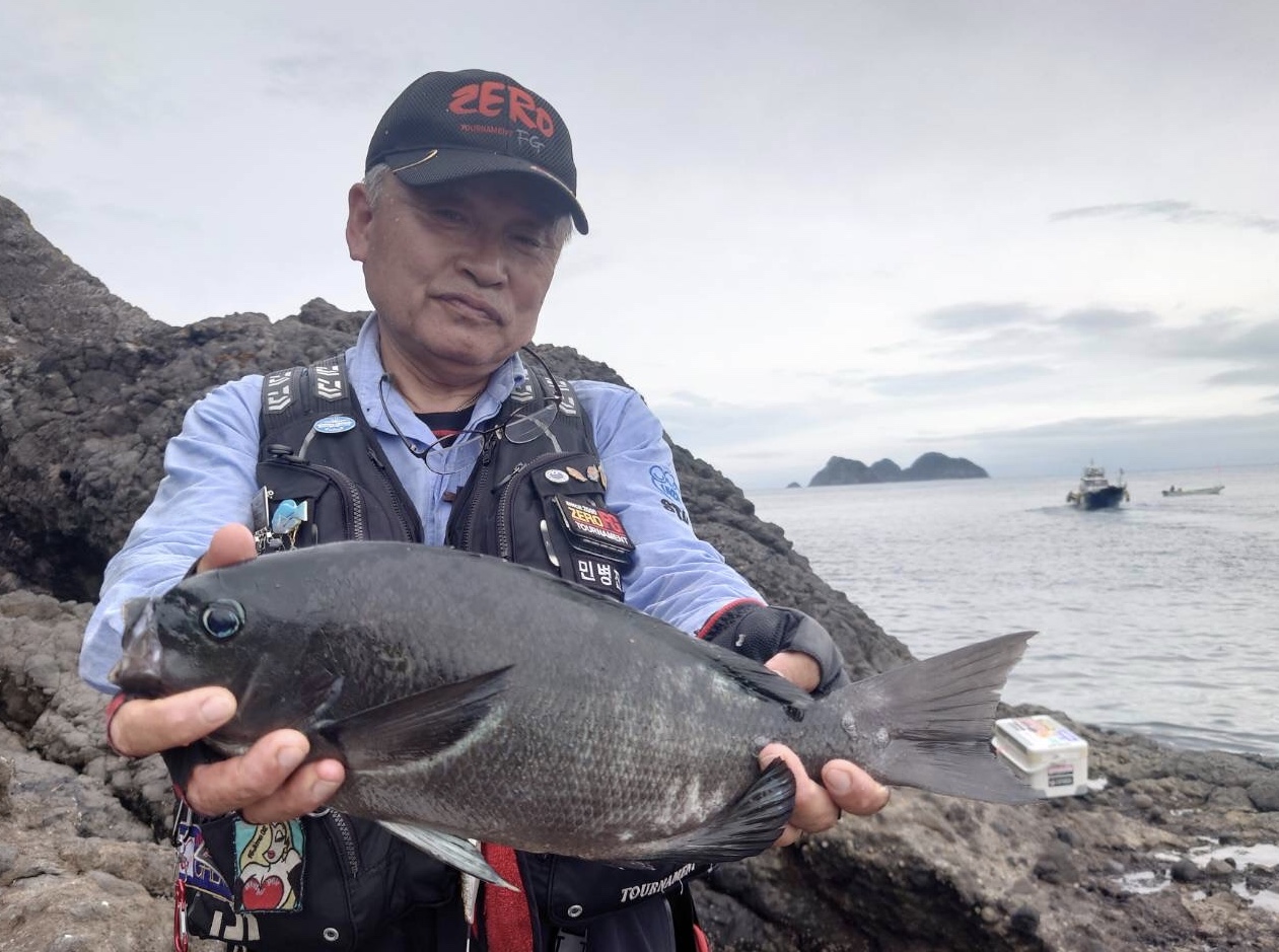 際を攻めればチョキサイズのクロが釣れます、同礁者は際を攻めて規定サイズの23cmを