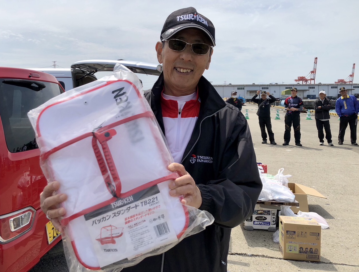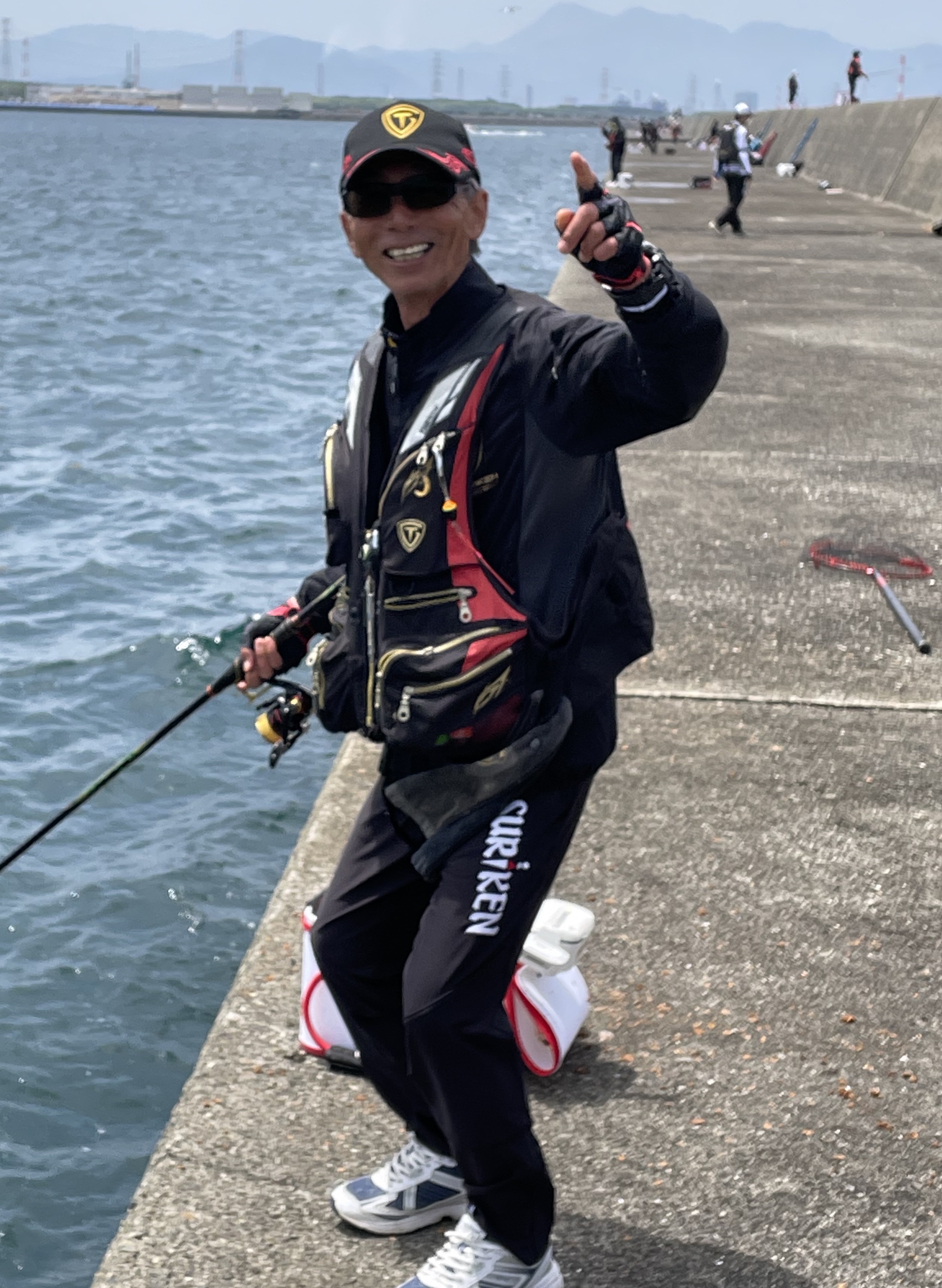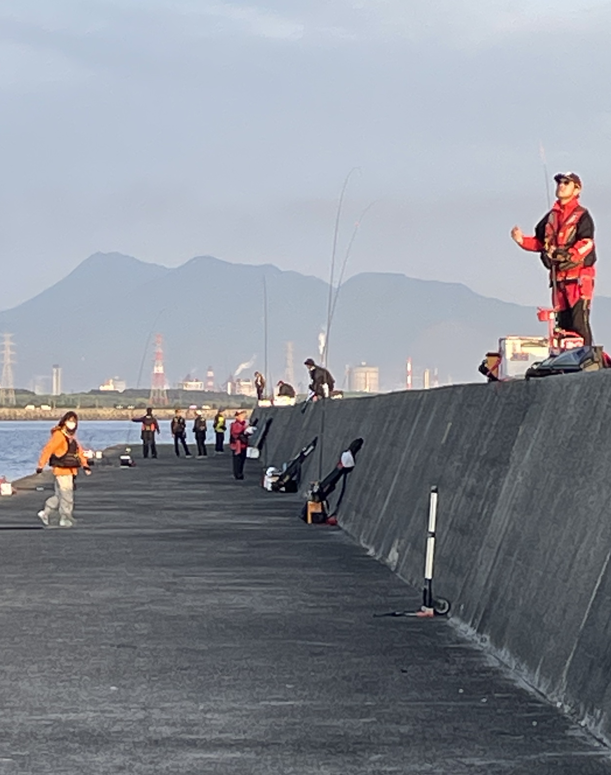 全長2、5kmの長い防波堤にくじ引きの順番通りに並んで釣りをします。