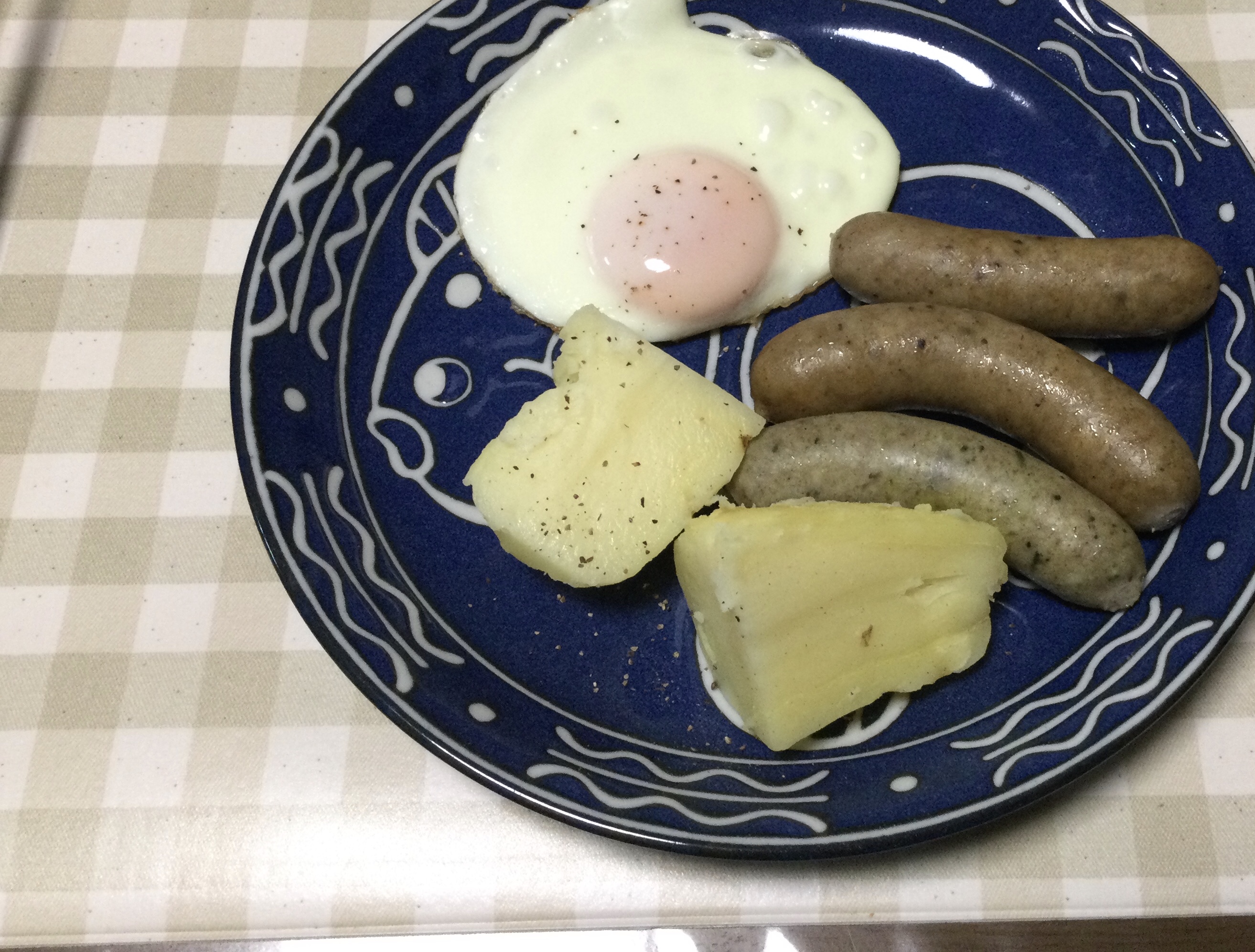 最後は栗をいただいたので栗ご飯と、こないだ作ったウインナーソーセージで一品です。