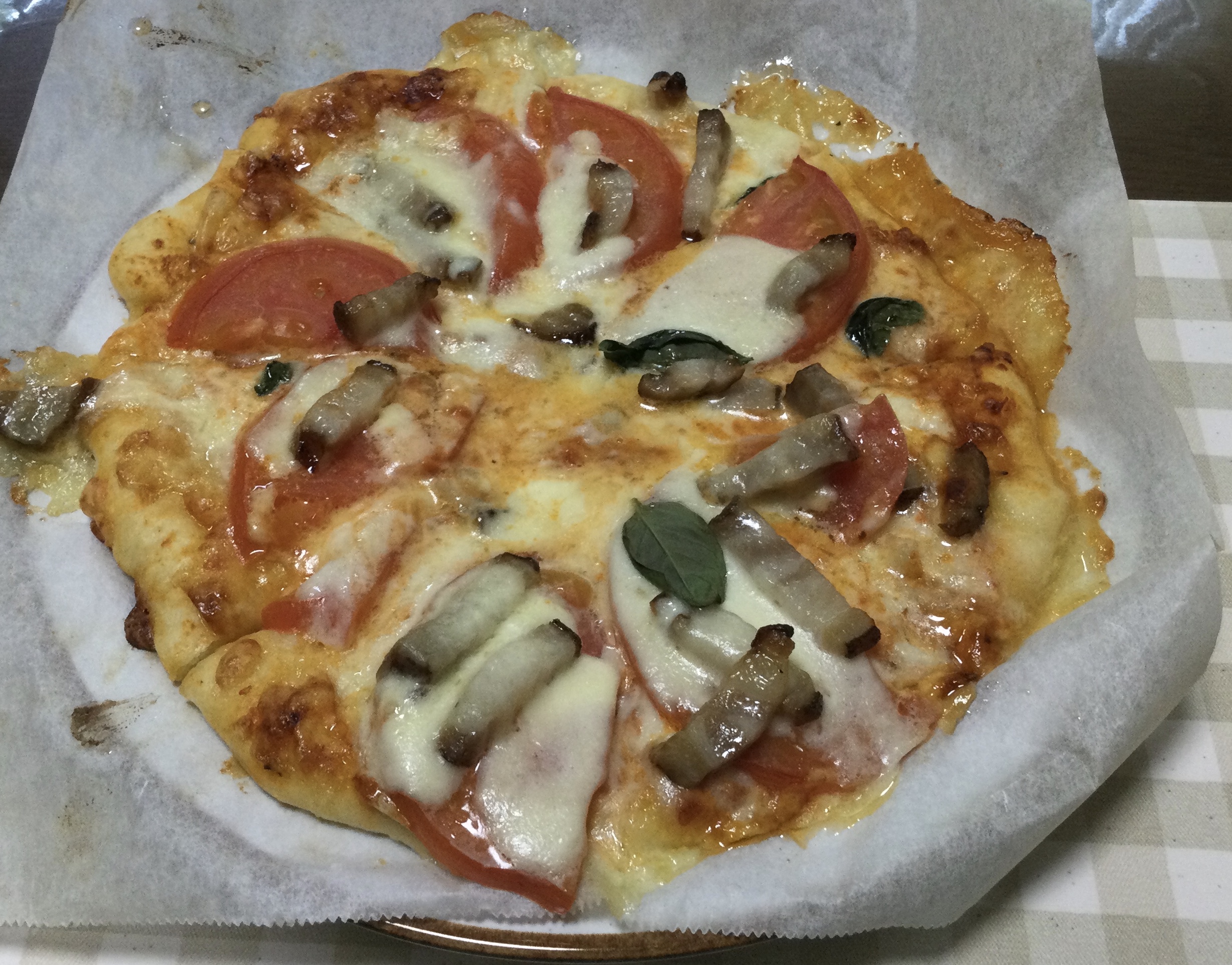奥さんが休みの土曜日は、久々にピザにしました、基本のマルゲリータに自家製の