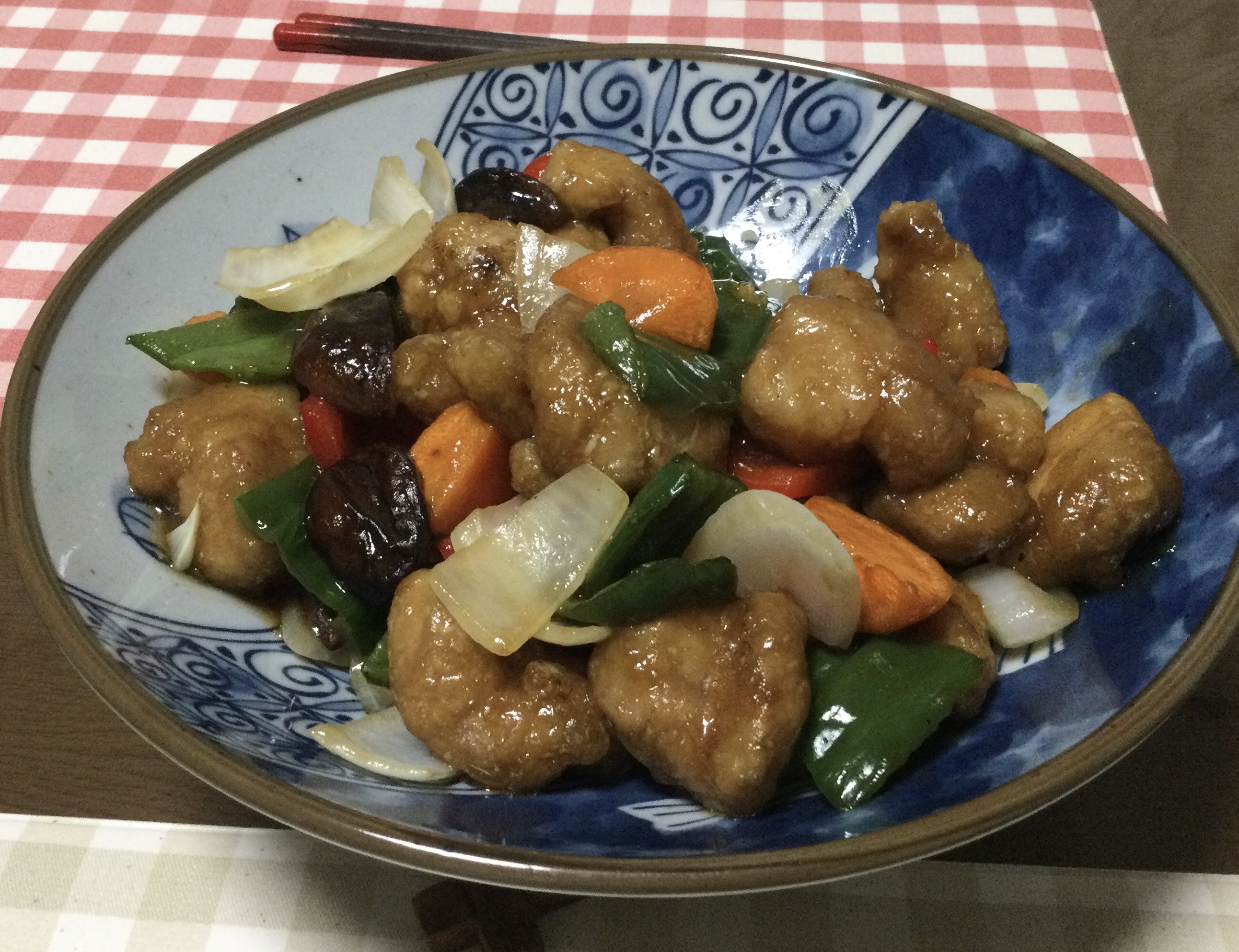 おかずは、チグハグですが酢豚にしました。