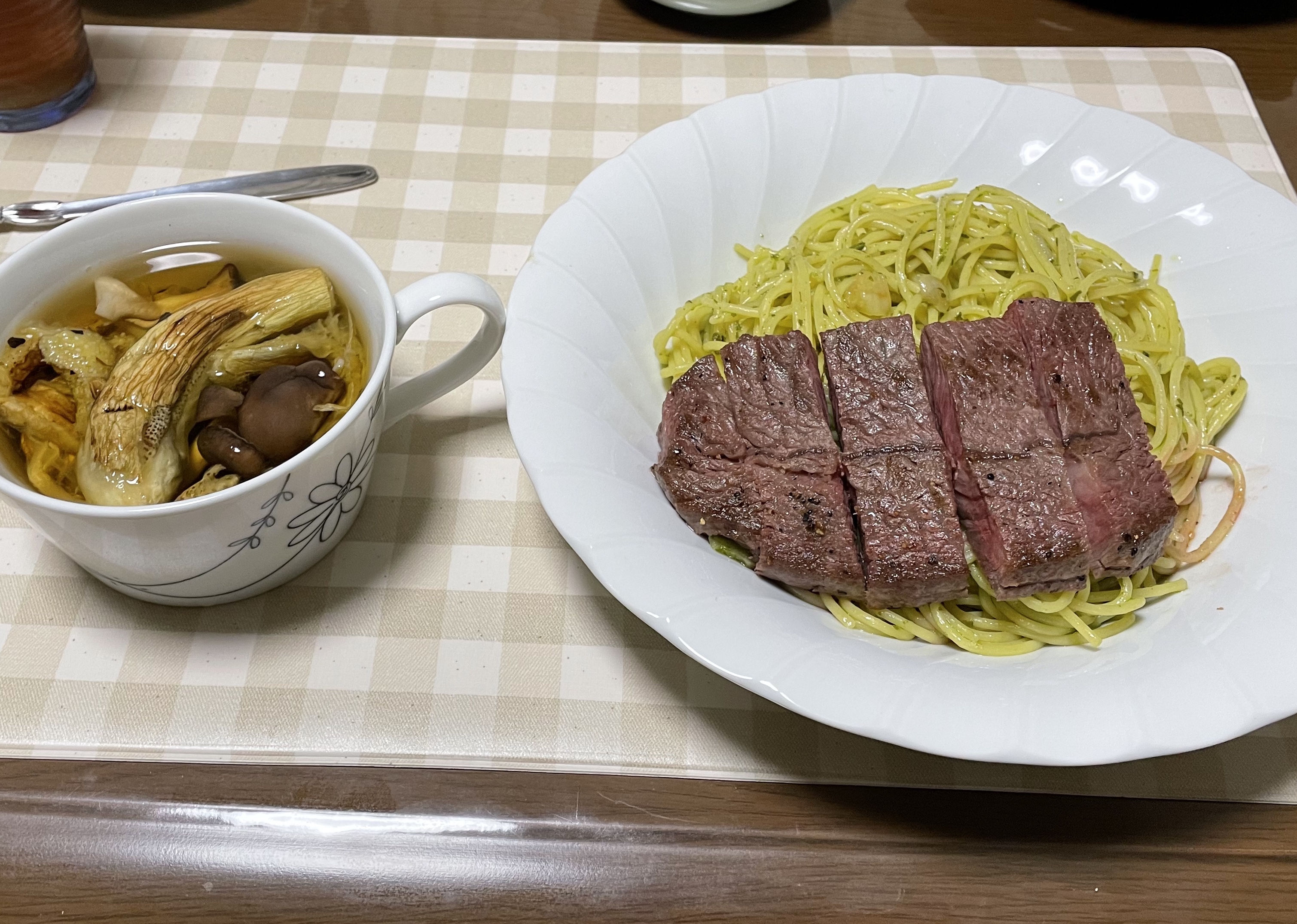 最近はタンパク質が足りてないようなので、ミツボのステーキを面倒なので上に載せました。