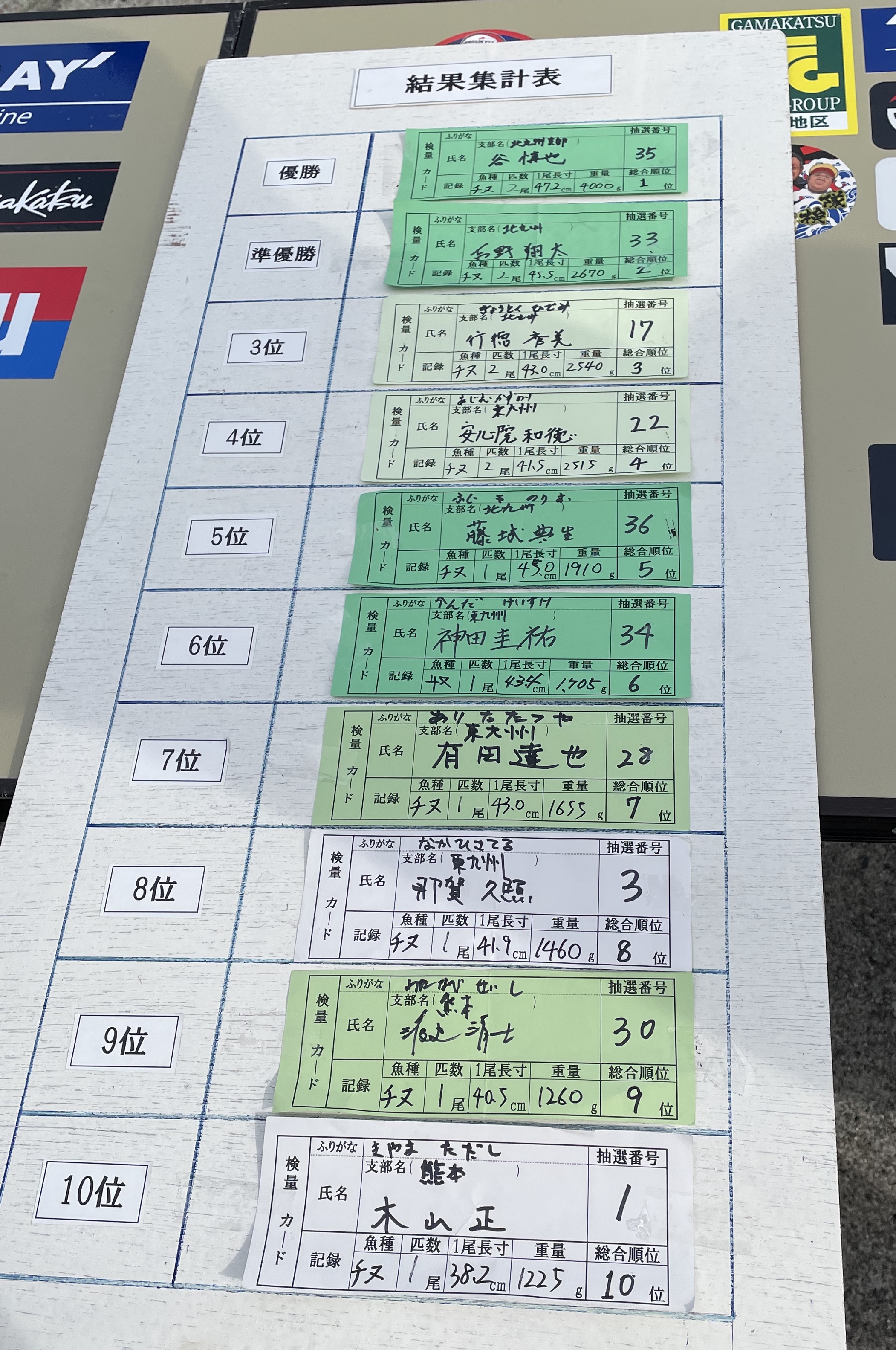 優勝は北九州支部の谷くん、2匹で4kg超えのダントツでした。