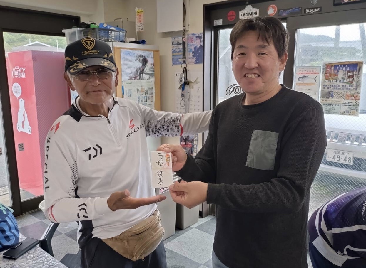 最後に丸銀釣りセンターから無料乗船券の提供がありました、ありがとうございます。
