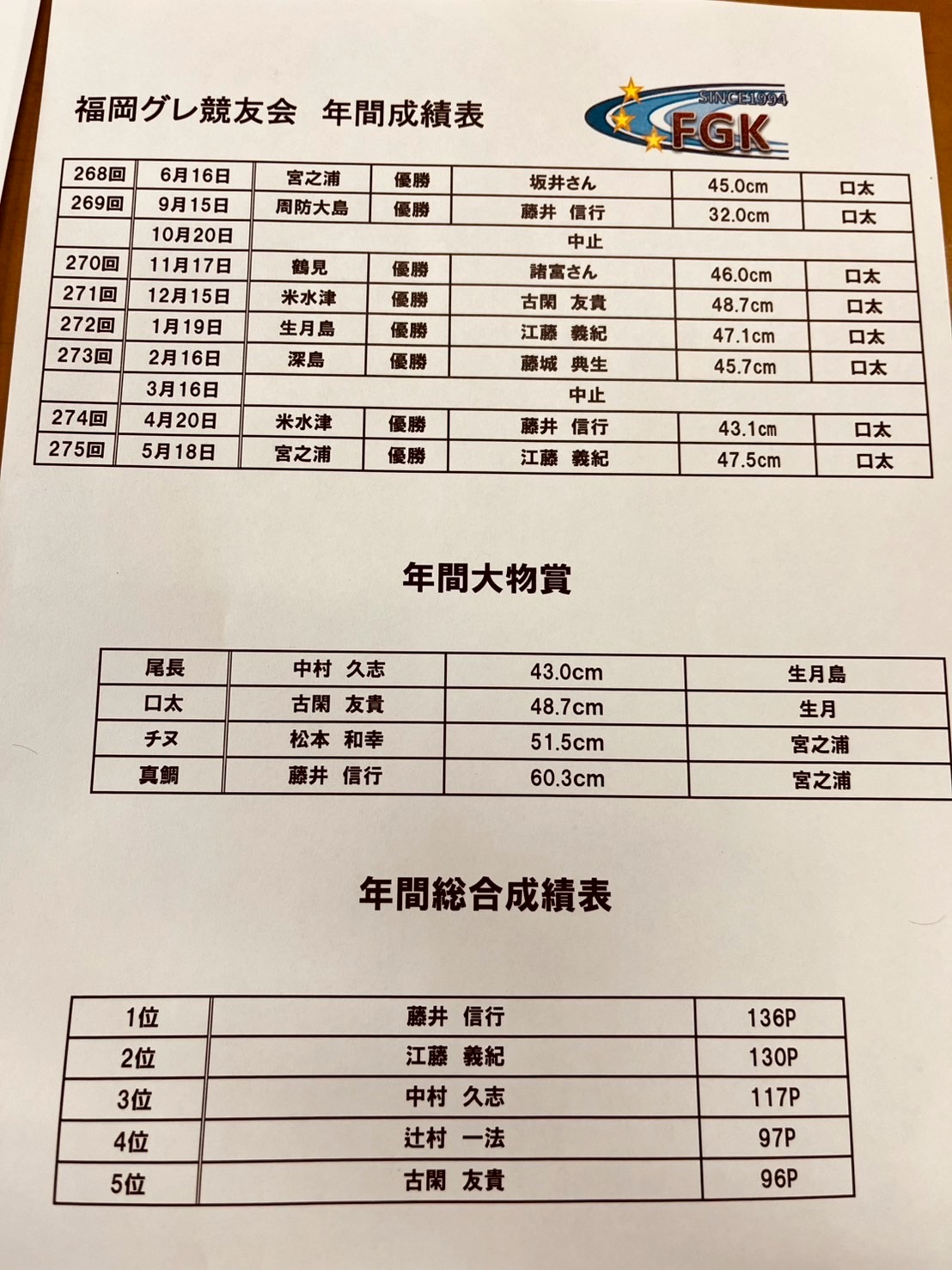 5位は葛井信君でした、この方でかイサキをクーラーの蓋が締まらないほど釣っていました。