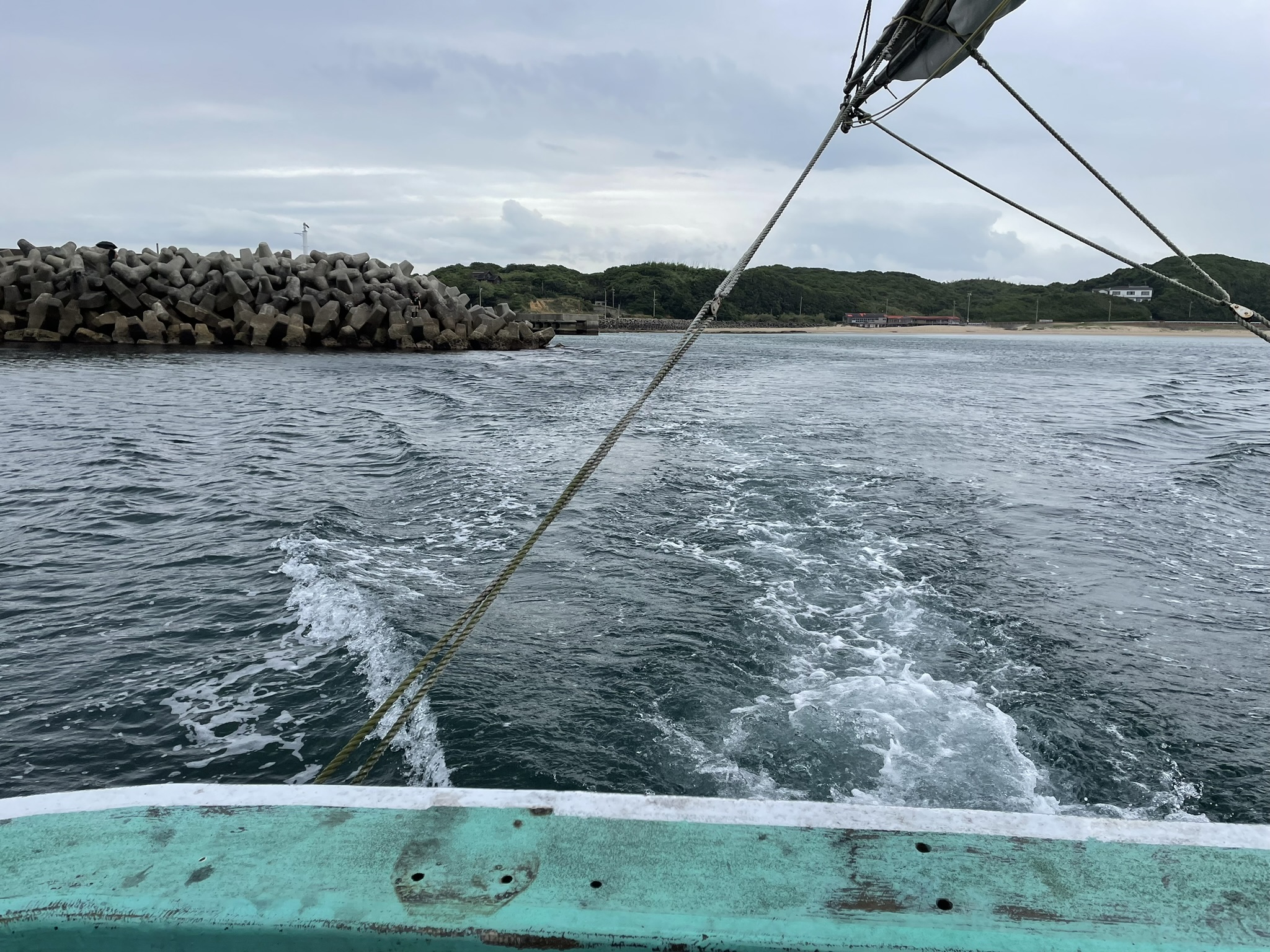 雨の予報でしたが波も小さく、意気揚々と出港しましたが、今回はかなり近場でポイントに着くと